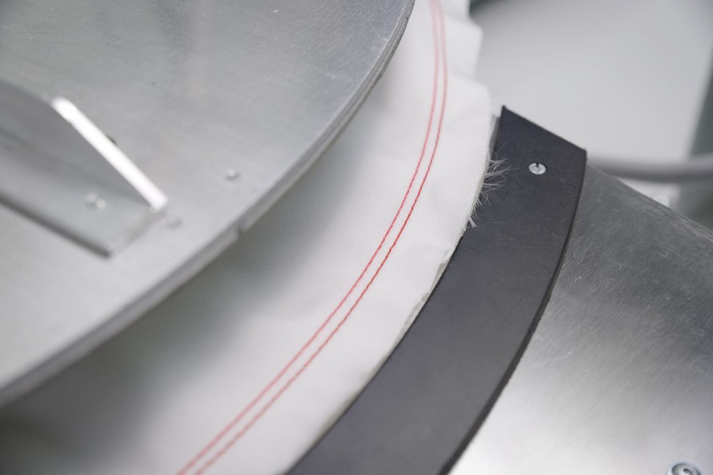 Max. sewing speed: 3,000 s.p.m. Diameter of the sewing field: 400 mm up to 1.000 mm Seam diameter: min. 550 mm, max. 850 mm