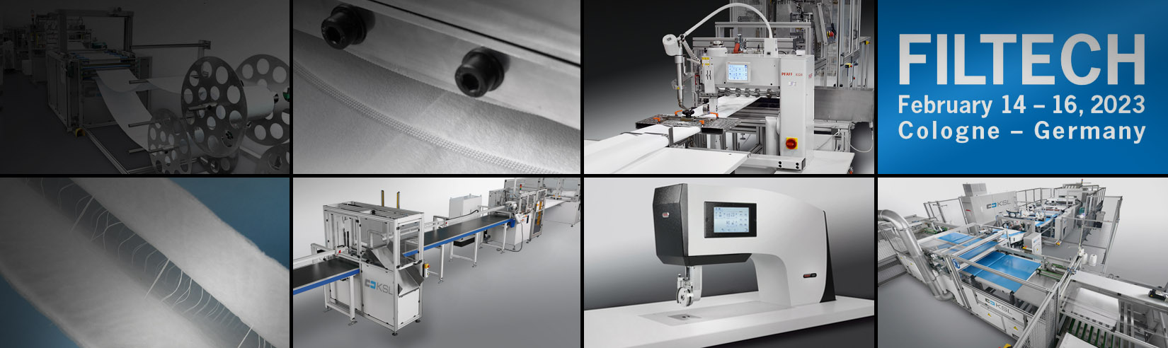 From February 14 – 16, 2023 we welcome you on the FITECH fair in Cologne. Together with Dürkopp Adler, we will show strong solutions for processing textile filters such as filter tubes, pleated filters, filter pockets, filter cloths, etc. For the fabrication of the filters we use the methods SEWING as well as ULTRASONIC, HOT-AIR and HOT-WEDGE WELDING. In dialogue with the customer we find the suitable processing method and the right machine or production line (semi- or fully-automatic). Our competent sales and consulting team is looking forward to advising you at the fair (hall 8, booth no. A7).
