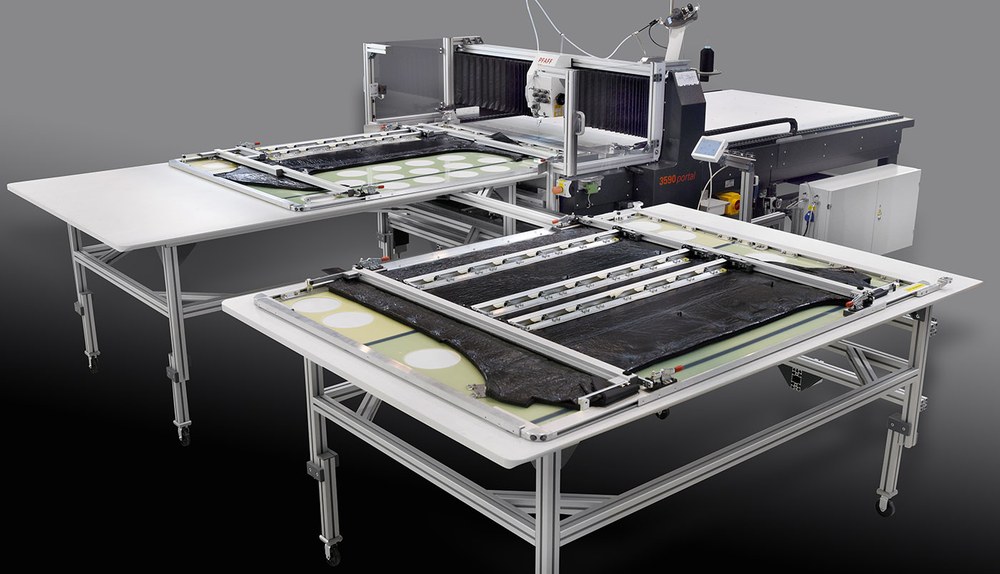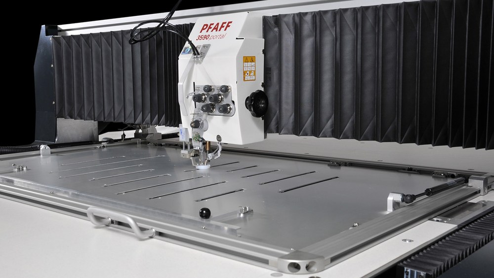 Freely programmable large-field computer stitchers of the new generation PFAFF 3590 portal are efficient sewing units "Made in Germany". Know how paired with experience and the latest technologies in engineering, drive and control technology, set the pattern when it comes to reliability and process security. The sophisticated sewing technology based on our marathon vertical hook and an unique seam optimizing system provide the highest seam quality and a perfect stitch quality in multidirectional sewing over the whole sewing area. All complex top-stitch and decorative stitching operations can be mastered with this new PFAFF 3590 portal.