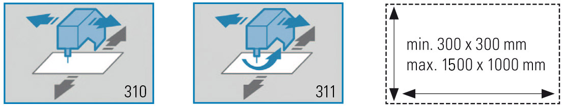 • Sewing head, pneumatically liftable (75 mm) for direct access to any seam position