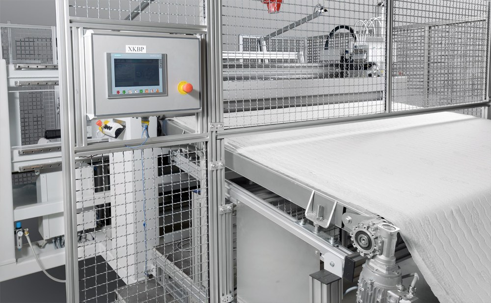 • Outfeed conveyor with optical material width measurement for feeding and measuring the width of the quilted fabric
