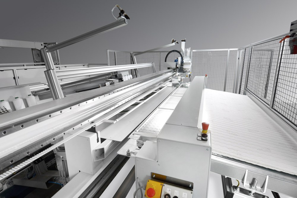 • Circular knife cutting system for separating the mattress panels directly behind the cross sewing machine