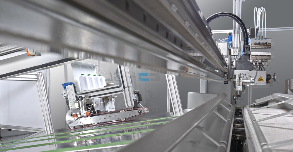 With the KL 242, different to the KL 244, the cross seam is sewn first. This setup reduces waste when changing sizes or models and makes the machine the ideal production system for make-to-order production.