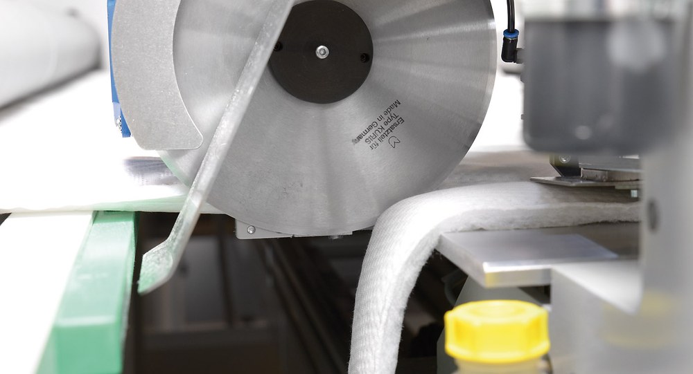 With the KL 244, different to the KL 242, the side seam is sewn first. This machine concept increases the output and turns the machine into a highly efficient production system. It guarantees a high level of operational safety with little maintenance. Thanks to the compact design, the required floor space is very small